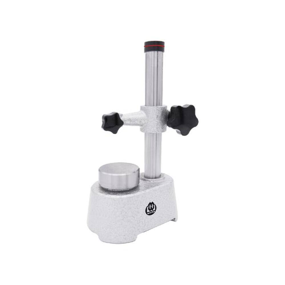 Sağlam döküm demir gövdesi ve Ø 22 mm çapındaki sabit çelik kolonu, ölçüm sırasında maksimum rijitlik ve stabilite sağlar. Komparatör tutucusu, standart Ø 8 mm H7 toleranslı bağlantı deliği ile çoğu komparatör ve dijital indikatörle uyumludur ve 100 mm'lik bir dikey hareket aralığına sahiptir.