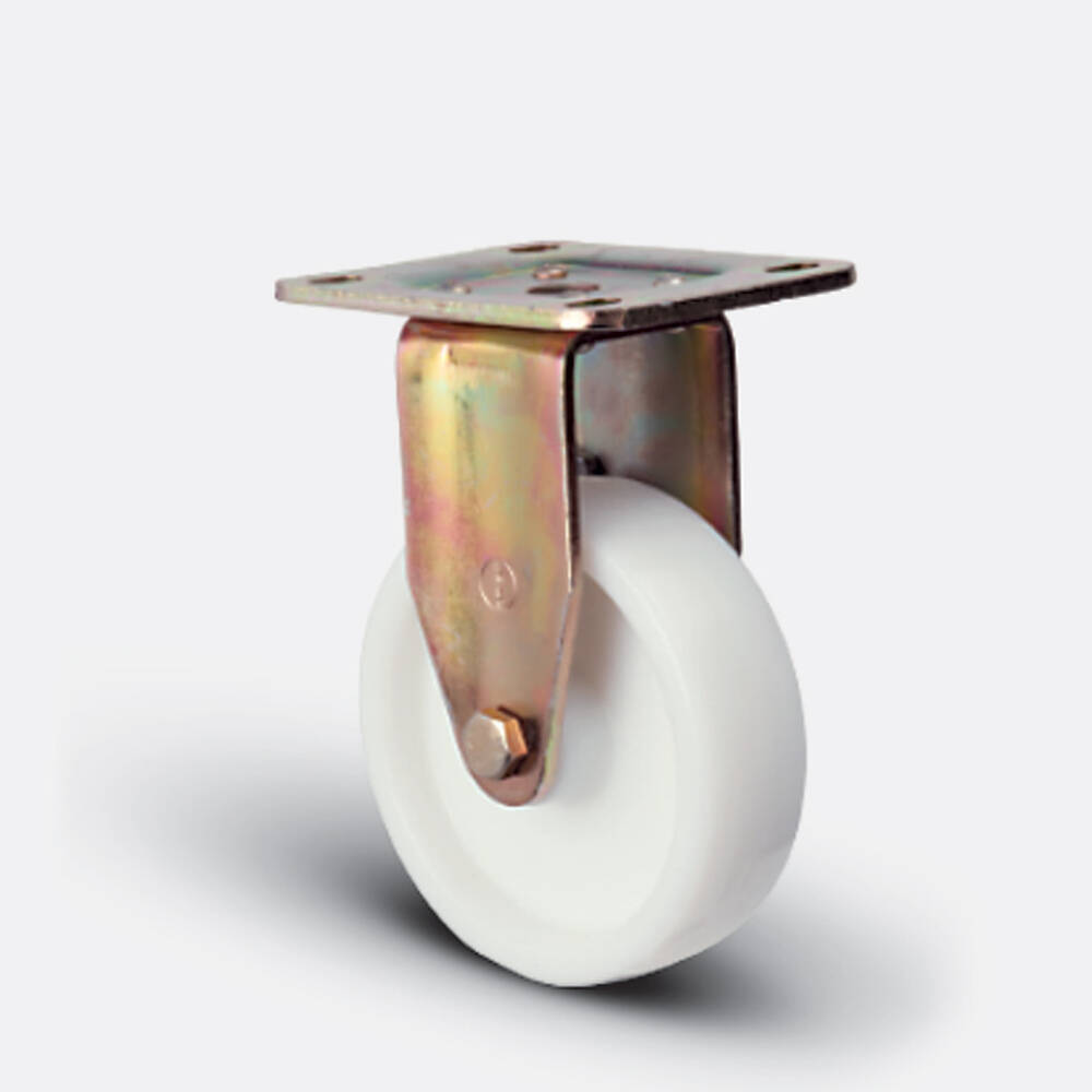 Poliamid teker (Naturel Beyaz), ağır sanayi tipi, kendinden burçlu ve masura rulman yataklı