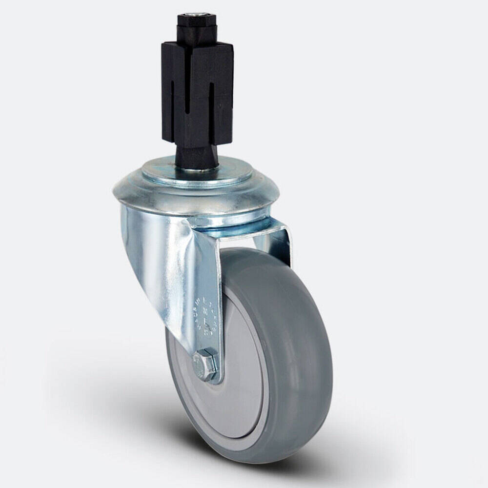 Preslenmiş çelik saç, beyaz çinko kaplama, çift bilya yataklı, döner başlık, plastik toz koruması, cıvata ve somunlu teker aksı