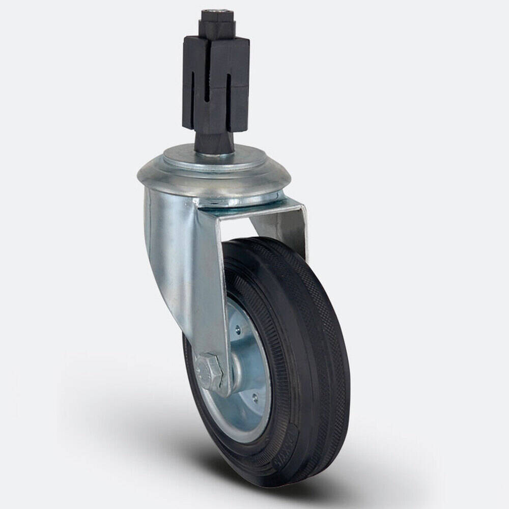 Preslenmiş çelik saç kasnak, siyah kauçuk (85 Shore A), jant kapaksız, plastik burçlu yataklı