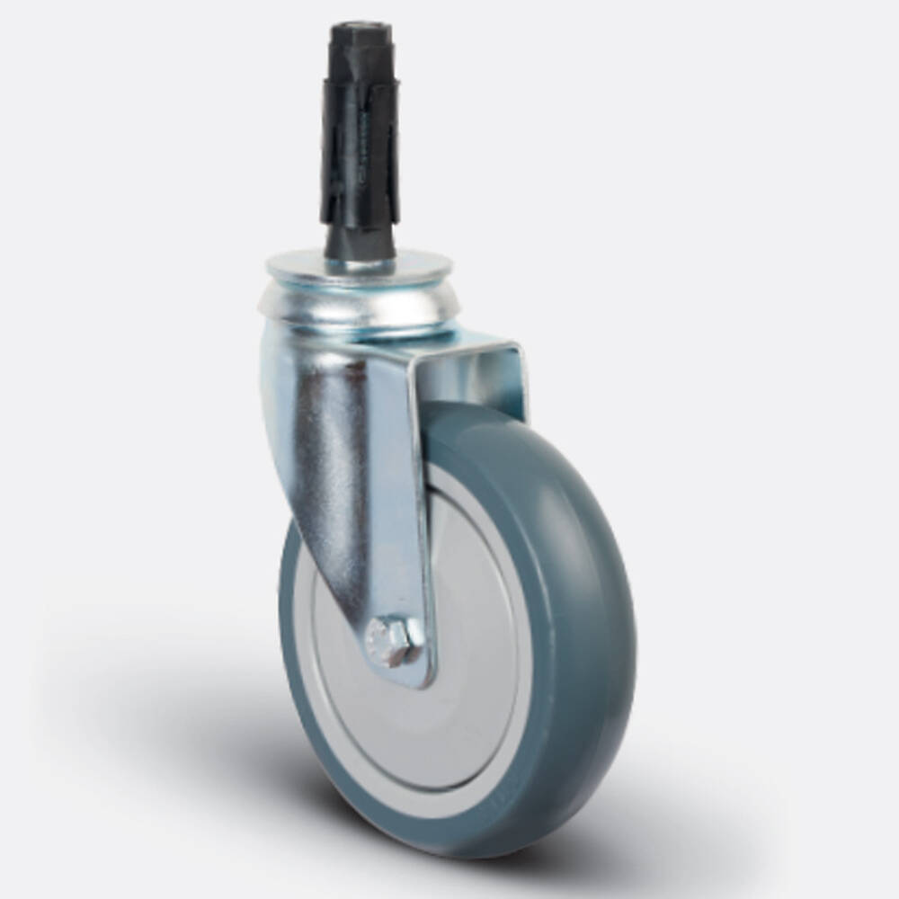 Preslenmiş çelik saç, beyaz çinko kaplama, çift bilya yataklı, döner başlık, cıvata ve somunlu teker aksı