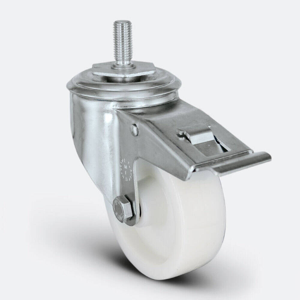 Poliamid teker (Naturel beyaz), ağır sanayi tipi, jant kapaksız, bilya rulman yataklı